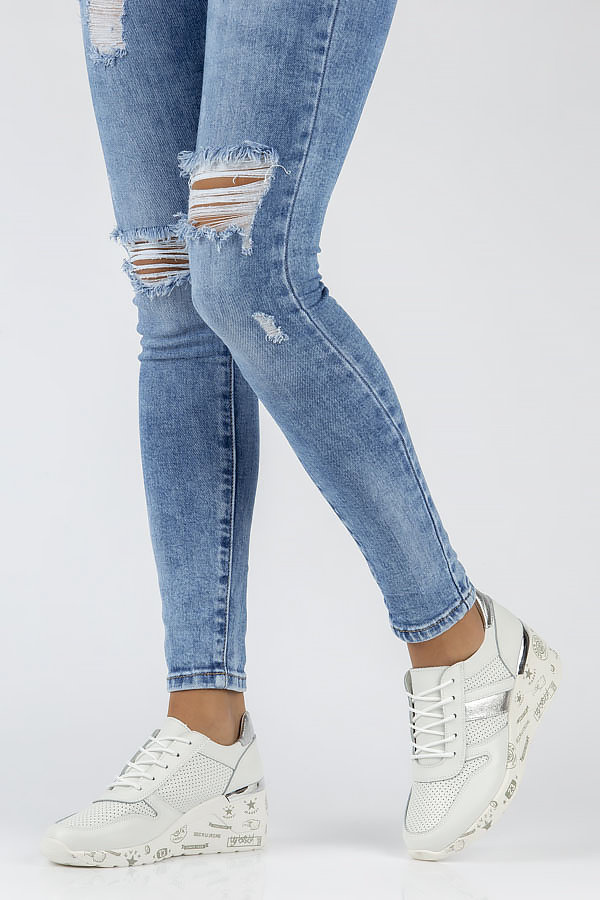 Skórzane sneakersy damskie na platformie Filippo DP3550/22 WH białe