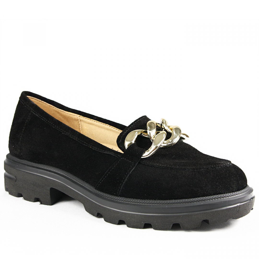 Skórzane półbuty damskie Clara Bastini P-160A czarny welur