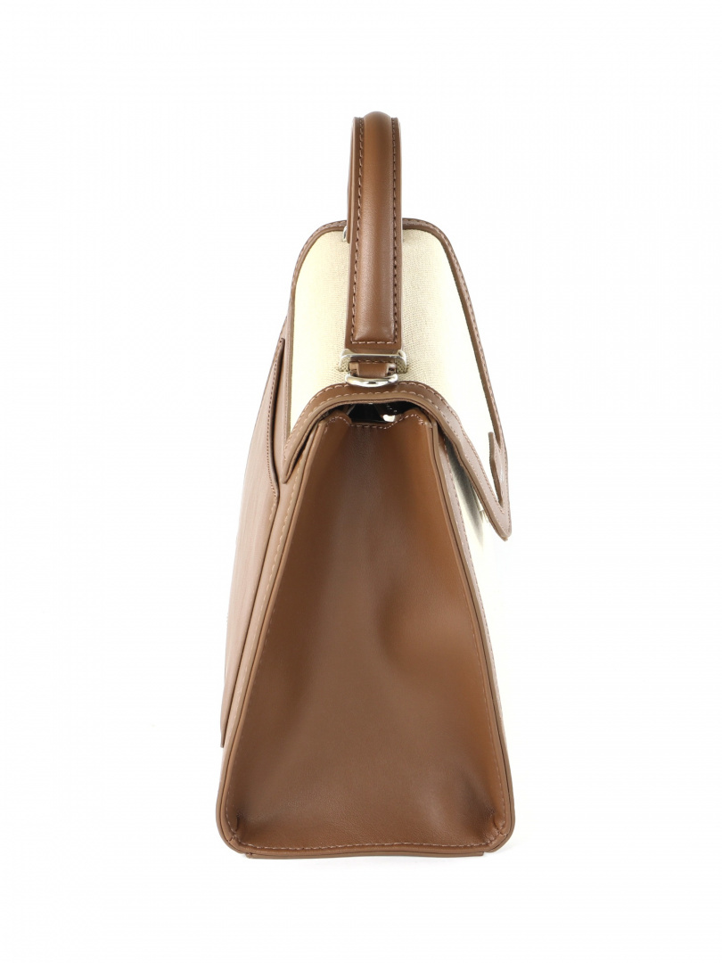 Torebka wykonana jest z połączenia skóry ekologicznej i materiału tekstylnego.