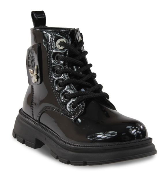 Obuwie zostało wyposażone w podwójny system zapięcia: klasyczne sznurówki, które pozwalają na idealne dopasowanie do stopy, oraz zamek boczny, który ułatwia szybkie zakładanie i zdejmowanie butów. Antypoślizgowa podeszwa zapewnia doskonałą przyczepność na każdej nawierzchni, co jest kluczowe dla bezpieczeństwa podczas zimowych zabaw. Te glany to idealne połączenie modnego wyglądu z praktycznością i ochroną.