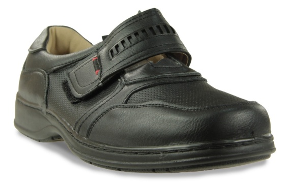 Podwójny system zapięcia: Buty są wsuwane, co pozwala na błyskawiczne zakładanie, a dodatkowy solidny rzep umożliwia precyzyjne dopasowanie tęgości obuwia do podbicia stopy. To idealne rozwiązanie dla mężczyzn o różnej budowie stopy.