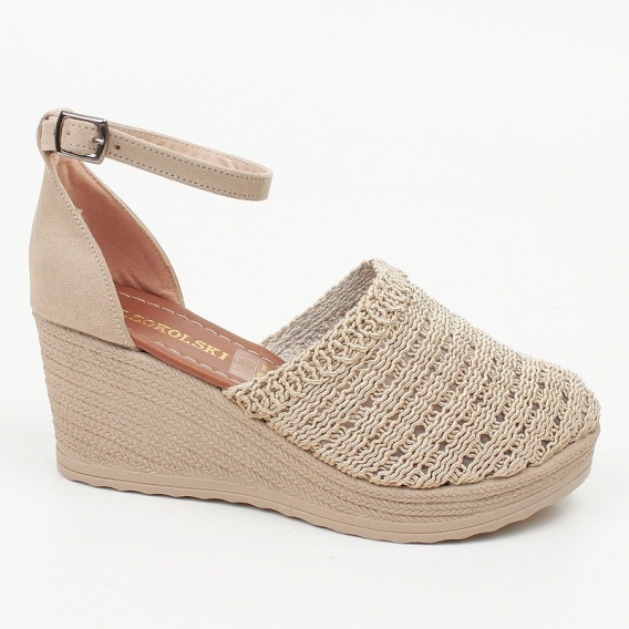 Beżowe sandały damskie T. Sokolski na koturnie – Lekkość tkaniny i kobiecy styl