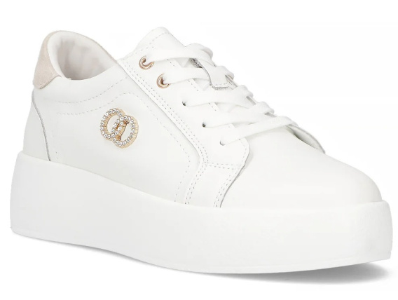 Sneakersy damskie wykonane są ze skóry naturalnej w kolorze białym. Te eleganckie buty sprawdzą się doskonale zarówno na co dzień, jak i w bardziej casualowych stylizacjach. Dzięki uniwersalnemu kolorowi , sneakersy łatwo dopasowuje się do różnych stylizacji.