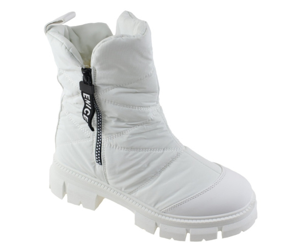 Model wyposażono w praktyczne zapięcie na zamek, umieszczone po wewnętrznej stronie cholewki, co ułatwia szybkie i wygodne zakładanie oraz zdejmowanie obuwia. Gruba podeszwa zapewnia komfort i wygodę użytkowania, a także doskonałą izolację od zimnego podłoża.